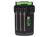 Luna HSS borsæt MD1 med 4 dele i Luna GO værktøjsholdersystem. Værktøjsholderen har plads til et topmonteret og fire hængende stykker værktøj i et unikt ophængningssystem med magnetlåsning. Til hurtig og praktisk håndtering og god opbevaring af værktøj med 1/4"-sekskantfatning. Værktøjsholderen er leddelt og kan nemt hægtes på og af bælteclipsen for bedre ergonomi og sikrere brug. Kan også bruges sammen med slagskruemaskine. Egnet bælteclips 246150106.