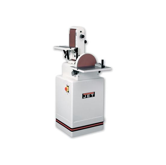 JET Kombineret rondel og båndpudser 31A er udstyret med en kraftig motor på 1.5 HK for bedste ydelse. Den har et kraftigt bord af støbejern ved rondellen kan skråtstilles 45° ned og 15° opad.