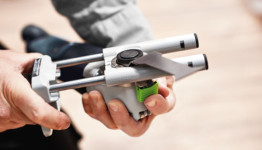 I Festool Vecturo videoen bliver der vist tilbehør til maskinen. En holder tillader justeringer af skæredybden, når man skal skærer noget af fx dørkarme. I dette eksempel, et det gulvet som de lægger som fungerer som højdeindstillingen på snittet, dybdeanslaget tillader brugeren at skære uden at skærer dybere end nødvendigt. En anden holder virker vidunderligt til lodrette dyksavning. Videoen viser vores Festool mand skabe et hul til at trække en ledning gennem en bordplade.
