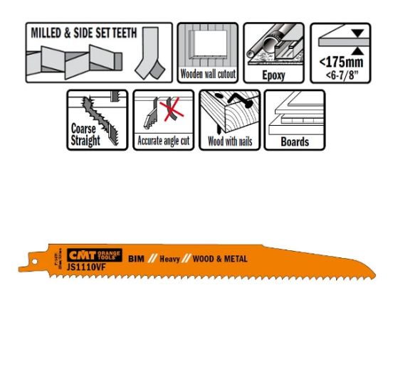 Bajonetsavklinger. Til træ med søm/metal, træ, spånplad e (<175mm), glasfiber, plastik/epoxy (<175mm), trævægge : træ/metal (<175mm), særdeles velegnet til rednings- og nedbrydningsarbejde.