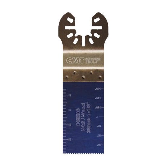 Saveværktøj til multiskærere. 28mm Til skæring i træ. Egenskaber: HCS med hærdede tænder. Materialer: Træ, stavlimet træ, spånplader, plast, rør og profiler. Anvendelse: Bred vifte af muligheder: Til installation af ventilationsriste. Skæring i møbelelementer. Udskæring til stikkontakter. Afkortning af trækomponenter såsom dyvler og tapper. Vindues- og dørbearbejdning.