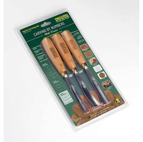 3 chrom-vanadium-legeret stål udskæringsværktøjer med det unikke Carving by Numbers-referencesystem.